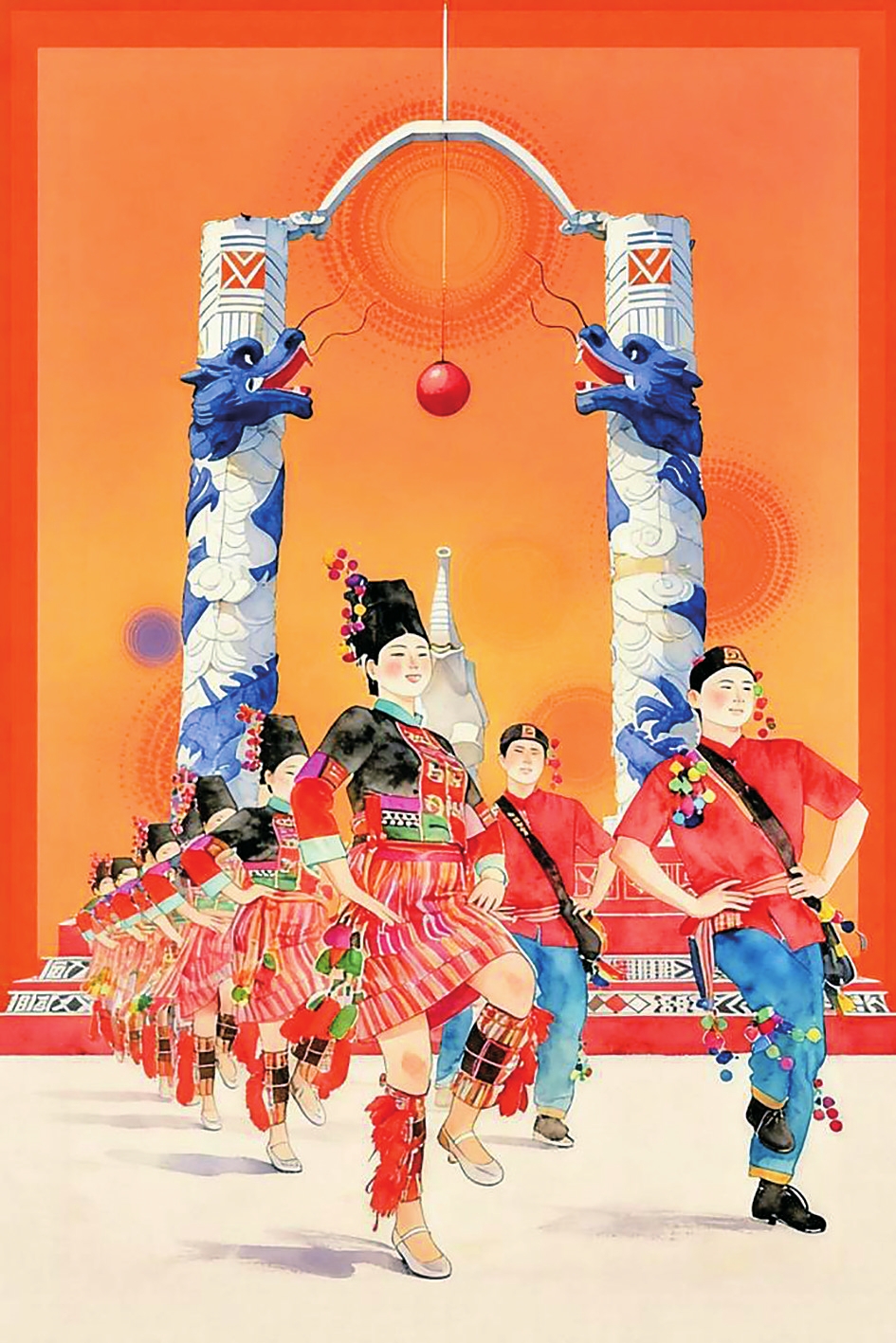 阿露窝罗节节日高潮常表现为大型集体舞蹈“万人蹬窝罗”,各族群众手拉手、踏着统一鼓点,围绕广场中央的青龙白象图腾柱欢快起舞,形成团结共融的壮观场面。同时,节庆也吸引大量游客参与,成为民族文化交流的生动课堂。