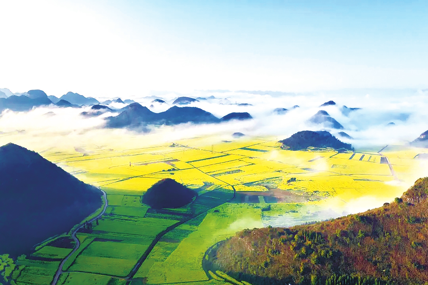 作为中国早春第一赏花胜地,罗平凭借喀斯特地貌与油菜花海的绝美融合闻名。此次云海与盛花期邂逅,绘就滇东早春最动人的画卷——漫步花田阡陌,登高远眺云海,满目金黄与缥缈云雾相拥,一步一景皆成诗,尽显春日风华,令人沉醉忘归。