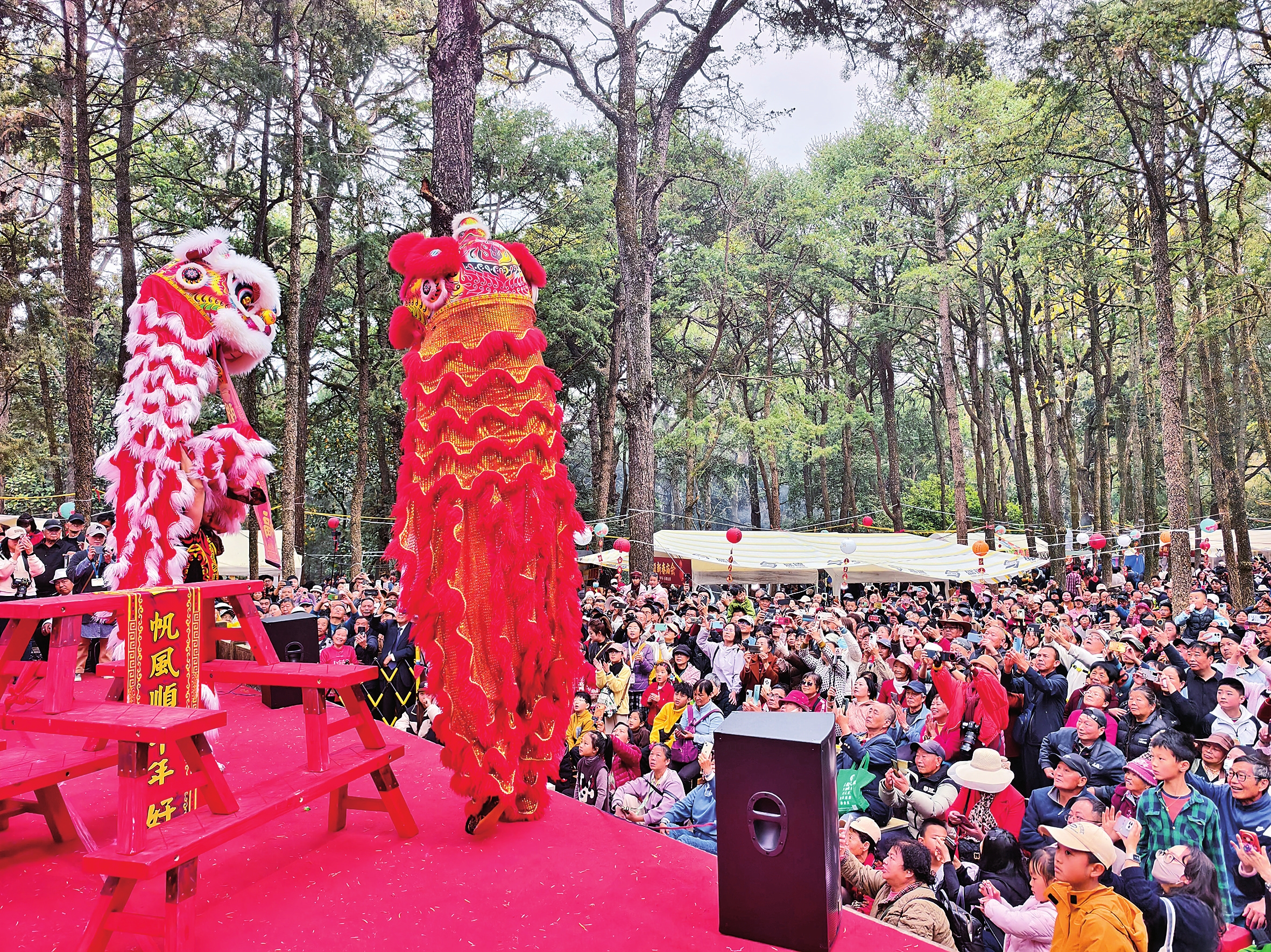2月25日,昆明金殿庙会在鸣凤山热闹举办,舞龙舞狮等特色表演引游客围观。 本报记者 江洋 摄