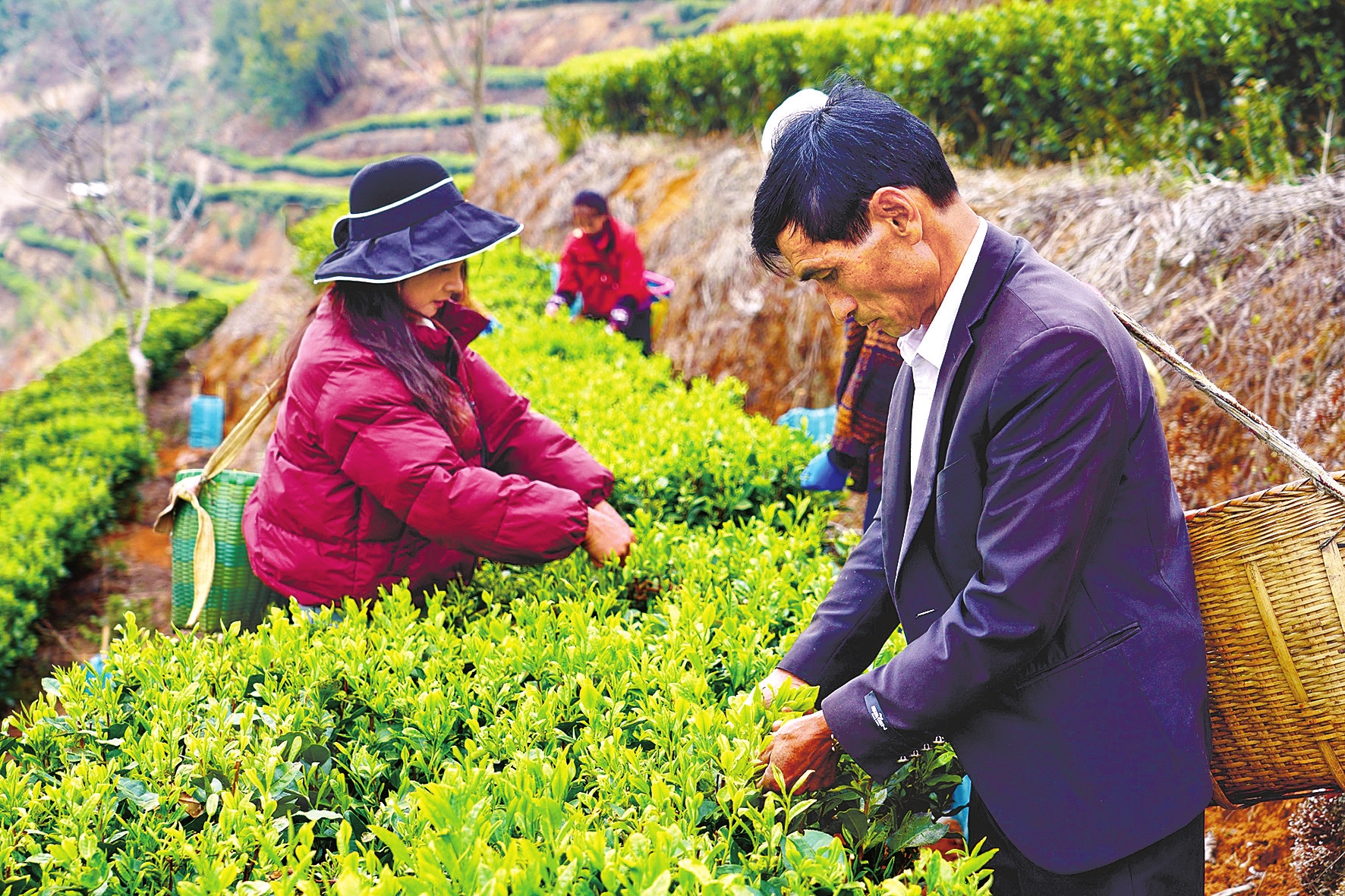 随着气温攀升,作为昌宁县31.5万亩茶园中率先开采的品种,黄旦茶早早吐露新芽,拉开了全县春茶采摘的序幕。2月25日,在翁堵镇立木山村,茶农鲁金相邀约村民结伴上山,大家肩挎竹篓、指尖翻飞,一掐一摘间,饱满紧实的芽尖纷纷落入篓中,头茬春茶新鲜“上线”。