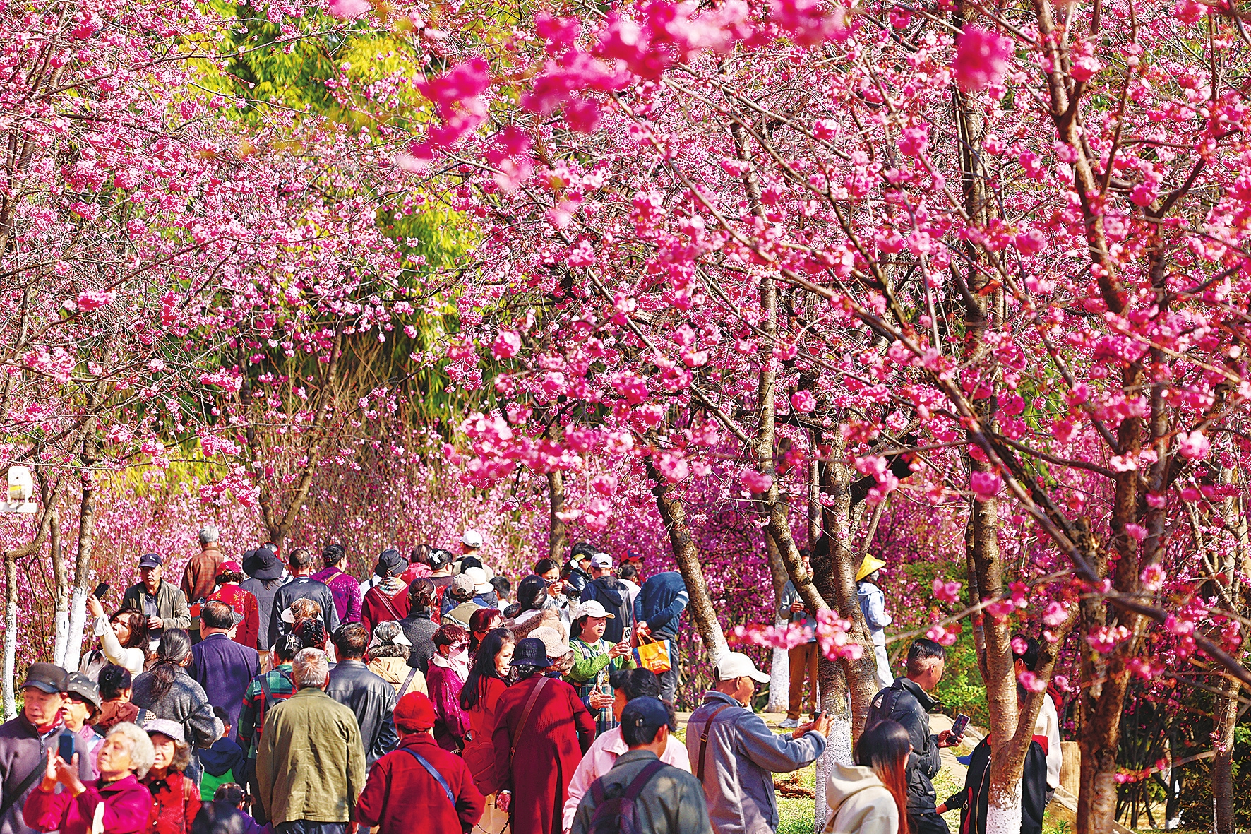 本次樱花节还准备了系列特色体验。3月6日,园区将举办盆景艺术体验课堂,游客可亲手制作盆景并免费带走,感受园艺乐趣;在周末及“三八”国际妇女节等节点,“花满圆通茶意浓”奉茶活动也将如期开展,古风装扮的工作人员将在花海中现场制作云南滇红,为游客免费奉上香醇茶饮,让大家在赏樱之余,感受云南红茶文化的独特魅力。