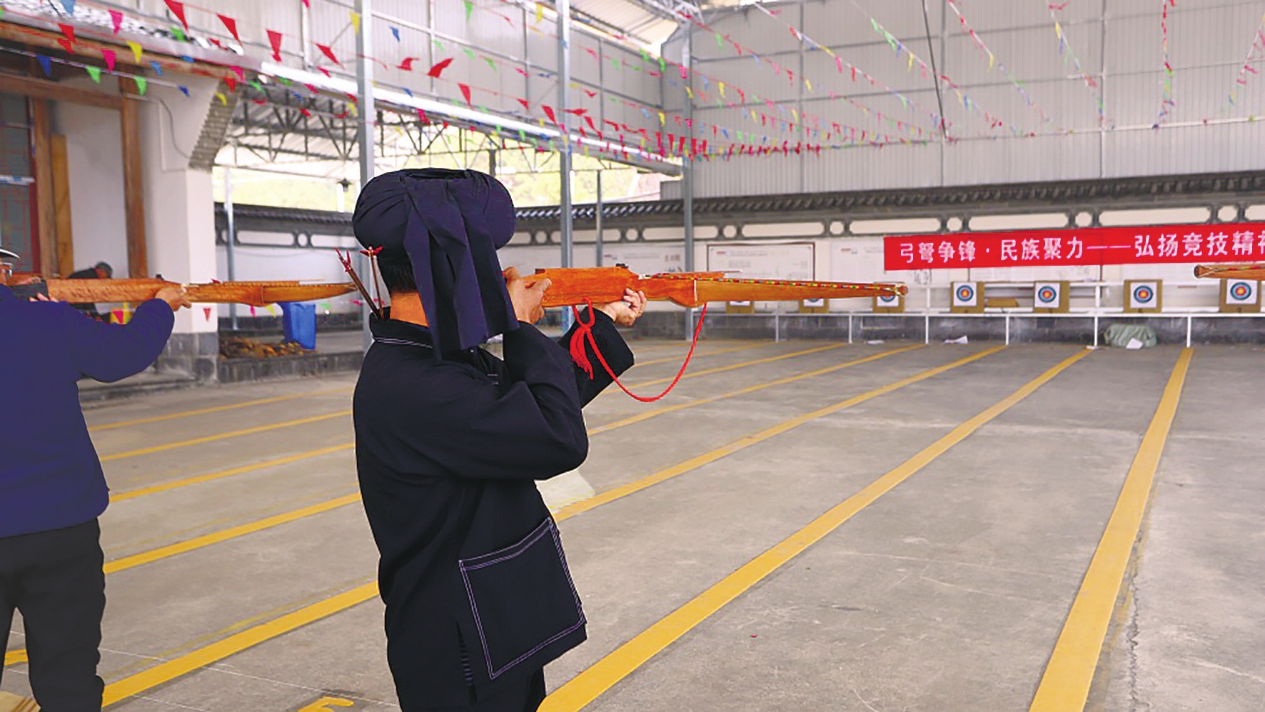 当日上午,篾弹弓比赛率先开赛。作为傈僳族民间传统技艺,篾弹弓以竹木手工制成,兼具实用性与民俗韵味。赛场上,选手凝神瞄准、拉弦发射,动作一气呵成,泥弹精准击靶,现场掌声、喝彩声此起彼伏,尽显民间体育的质朴活力。