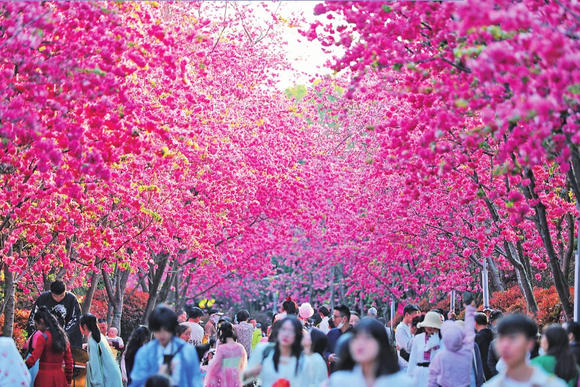 春风送暖,百花竞放。随着“三八”国际妇女节临近,春城昆明迎来最美赏花季——圆通山的樱花灿若云霞,郊野公园的桃花灼灼盛开,各大公园及街头巷尾化作缤纷花海,吸引全国各地游客,特别是女性游客纷至沓来,共赴这场春日浪漫之约。