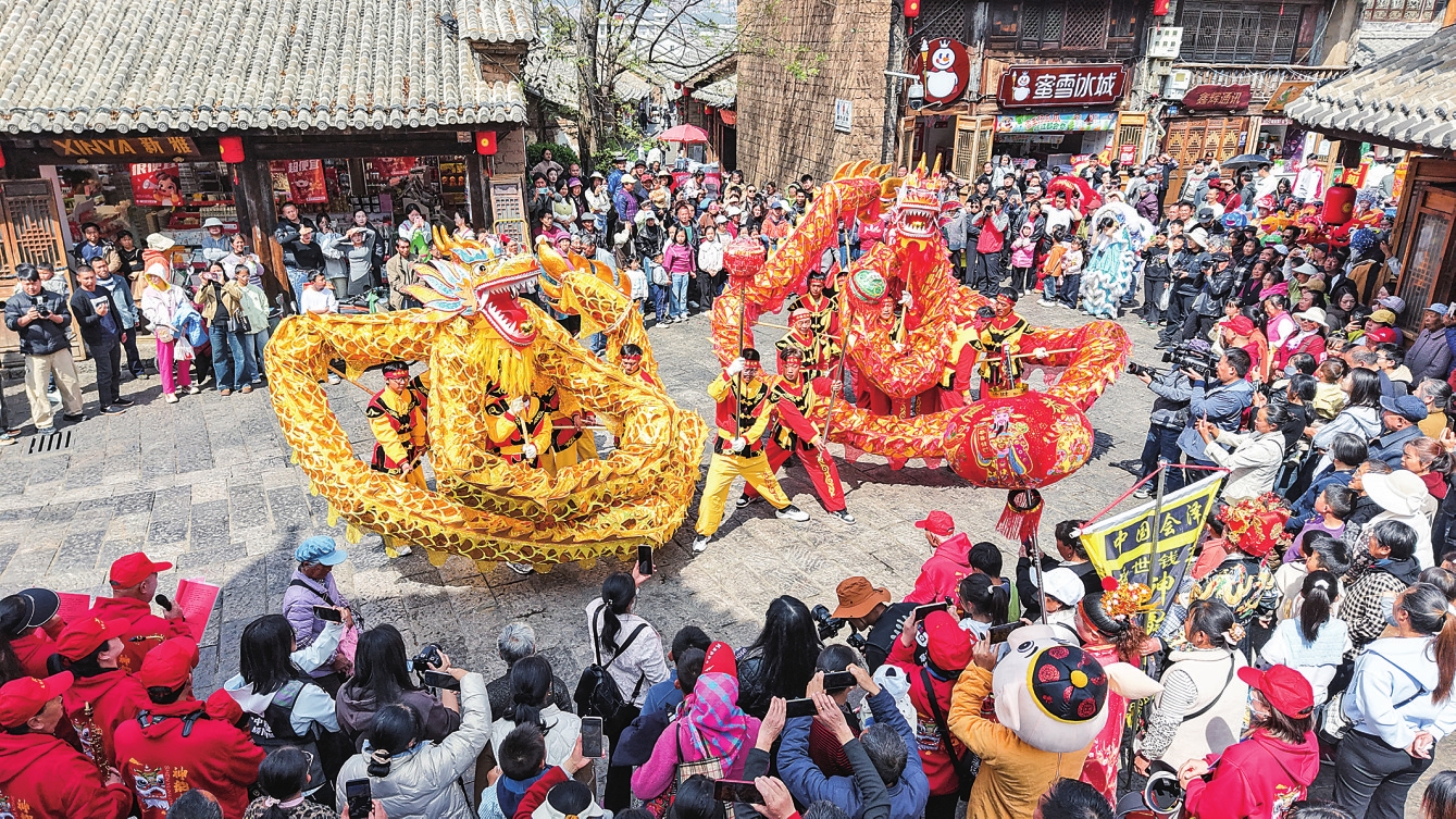活动现场,来自昆明的游客小双难掩兴奋之情:“我们昨天就到会泽了,感觉这里的年味特别浓,本地人也很热情。尤其是今天的舞龙舞狮表演,很有过年的氛围。我们打算在会泽多待几天,这里好玩又热闹。”像小双这样专程来会泽体验民俗年味的游客不在少数,他们纷纷举起手机记录下这精彩瞬间。
