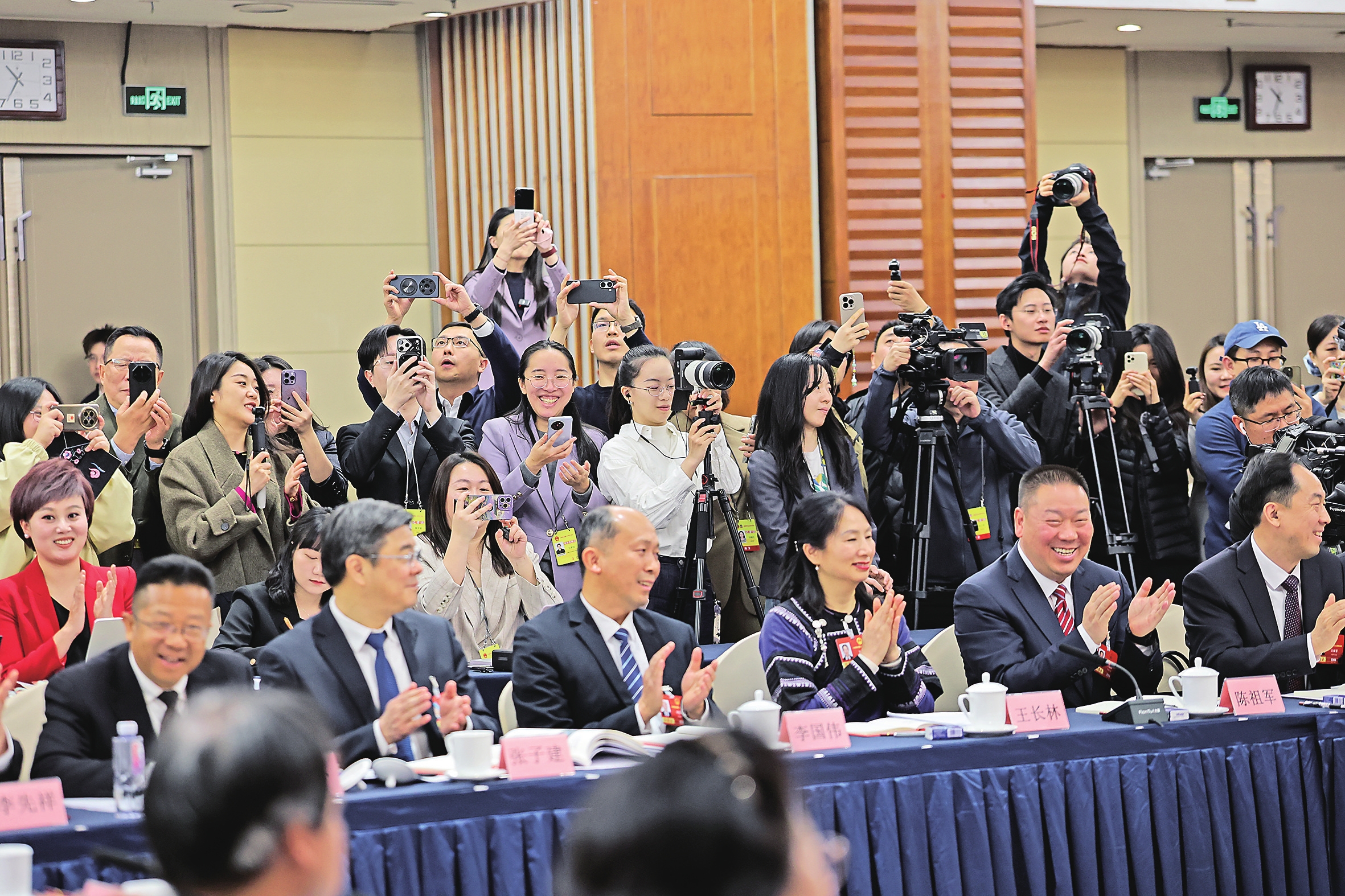 3月7日,云南省代表团举行全体会议并向媒体开放,55家境内外媒体的94名记者到会采访。 本报记者 陈飞 胡妤雅 摄