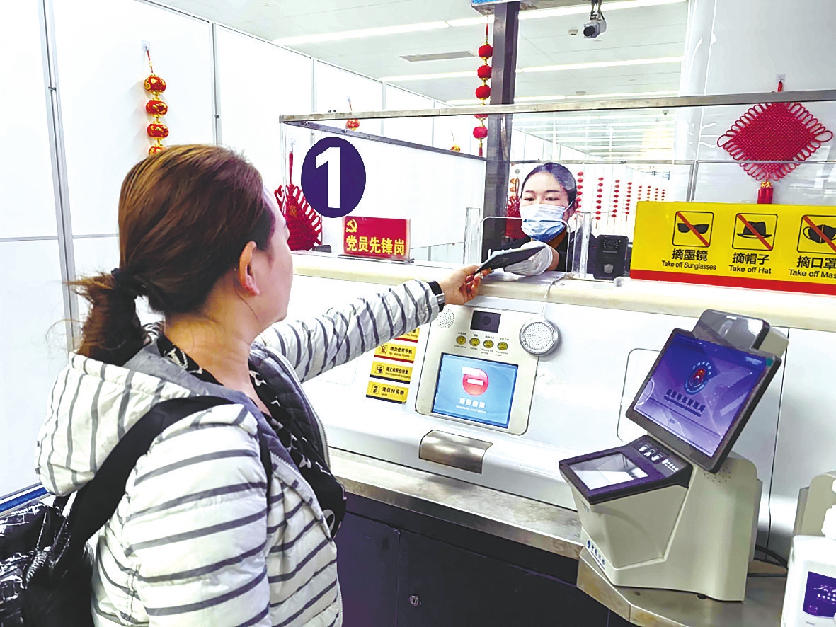 春节期间,南伞口岸验证大厅人流不息,日均通关旅客近4000人次。肖玉鞡在验证台前接证、比对、查验、盖章、递还,同样的动作,每天重复着数百次。
