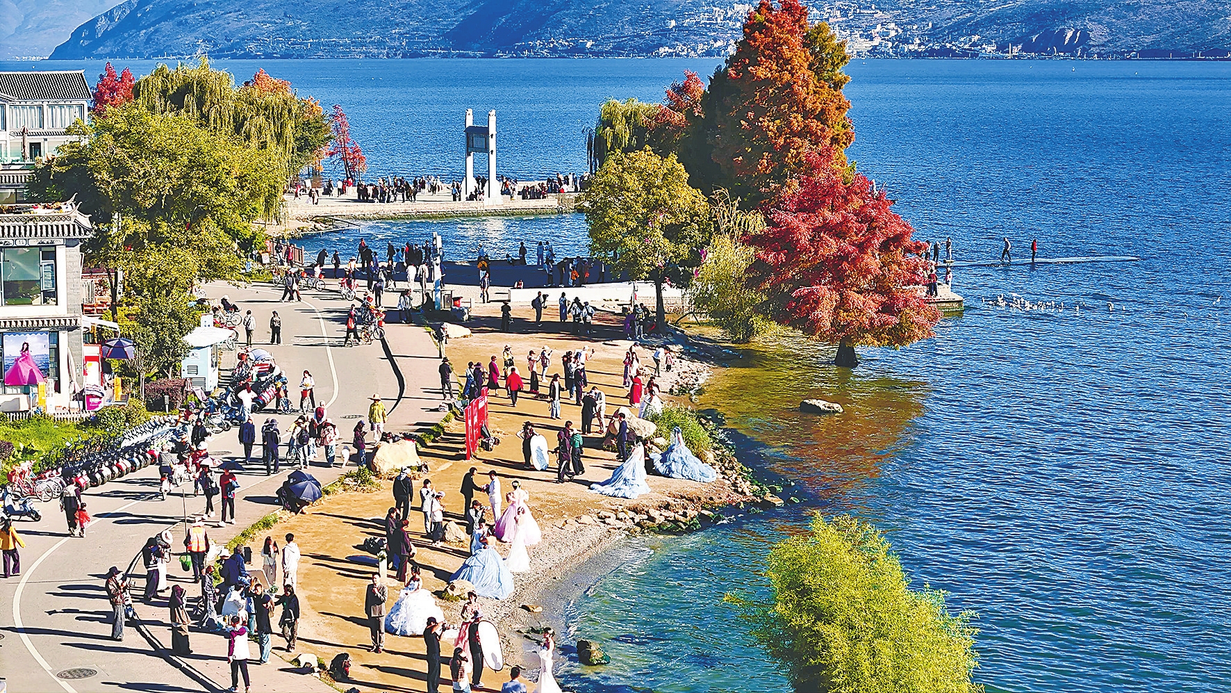 奔赴心仪的旅游目的地举行婚礼,既能体验婚纱旅拍和蜜月度假,又能在向往的风景中完成重要的人生仪式,越来越多的年轻人选择了这种轻量化、个性化和更松弛的新型婚礼模式。大理以优越的自然气候禀赋、深厚的旅游基础、慢节奏的生活,稳稳承接住这一消费趋势带来的经济机遇,从酒店民宿、旅拍场地到跟妆摄影,目的地婚礼带动了一条“浪漫经济”产业链,吸引了众多婚庆从业人员到大理工作创业。