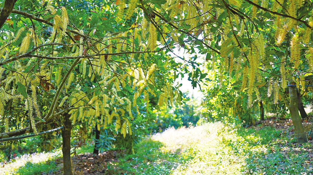 春风拂过大地,临沧市镇康县的43万亩坚果林褪去冬日的沉寂,迎来一年中最动人的花期。放眼望去,漫山遍野的坚果花竞相绽放,一簇簇、一串串缀满枝头,似雪如玉,清雅脱俗。目之所及,皆是温柔盛景;清风过处,尽是醉人芬芳。
