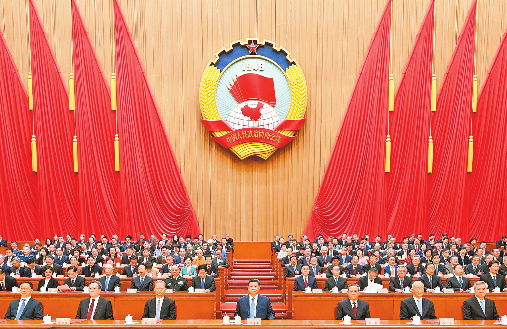 全国政协主席王沪宁主持闭幕会并讲话 新华社记者 黄敬文 摄