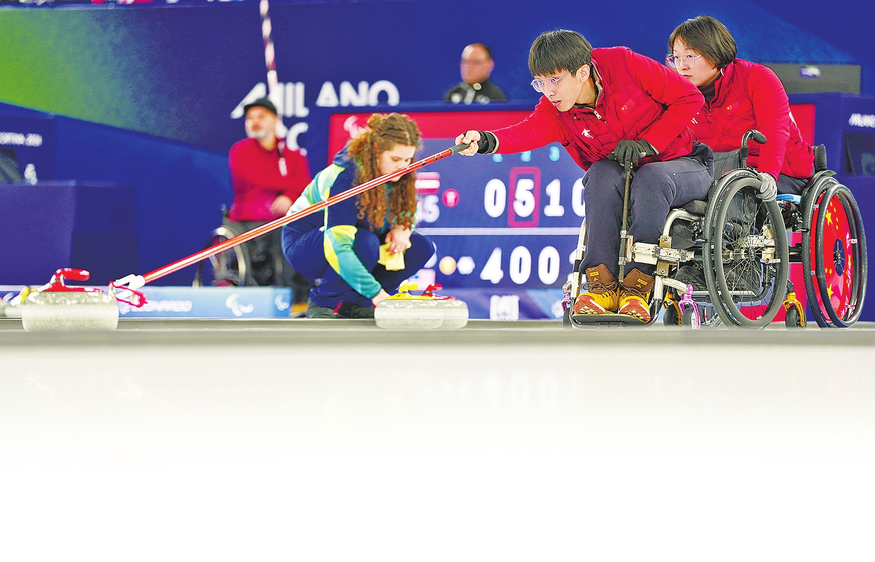 随着韩国队最后一投出现失误,中国队在米兰-科尔蒂纳冬残奥会轮椅冰壶混双决赛加赛局拿下关键两分,最终以9:7险胜对手,夺得该项目在冬残奥会历史上的首枚金牌。