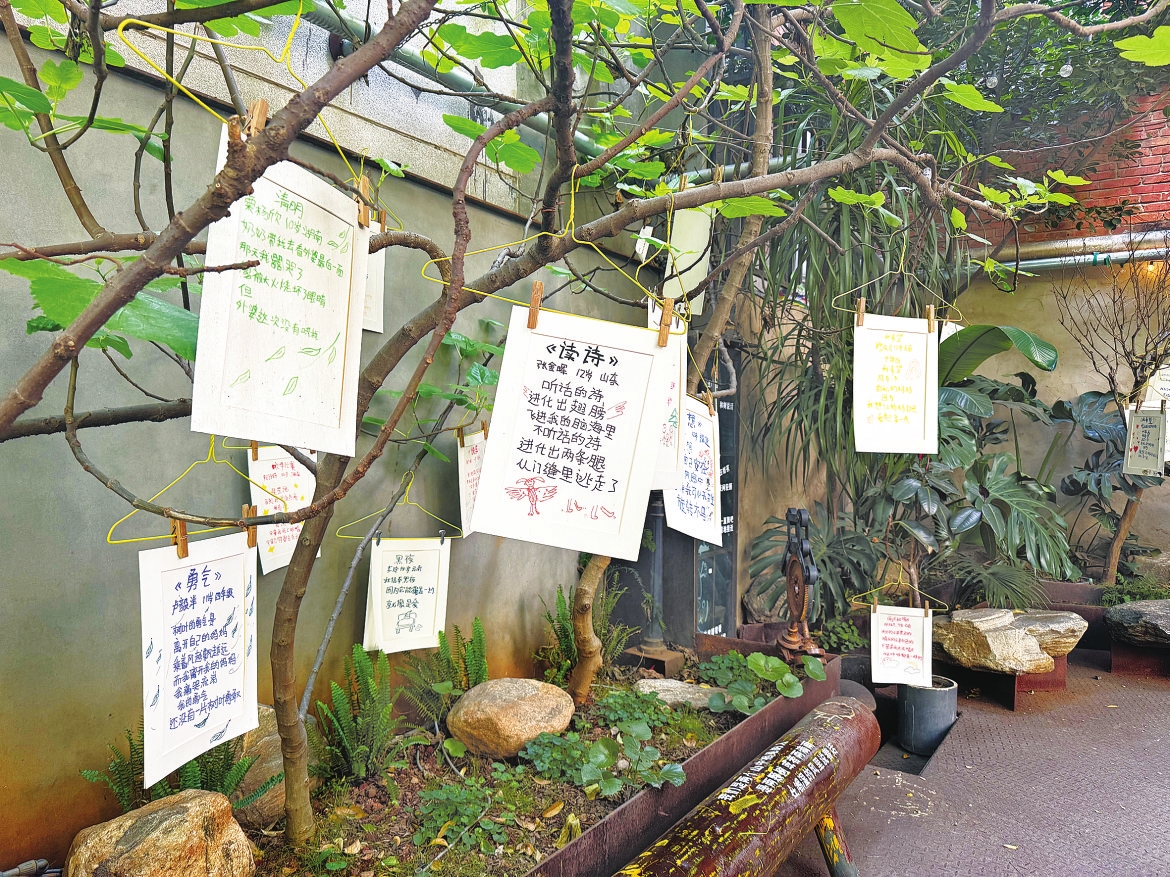 大双透露,展出的诗歌均选自《大山里的小诗人》诗集,在书店同步售卖,目前已全部售罄。“原计划本周末撤展,但市民热情太高,我们决定延续到四月底。”大双说。