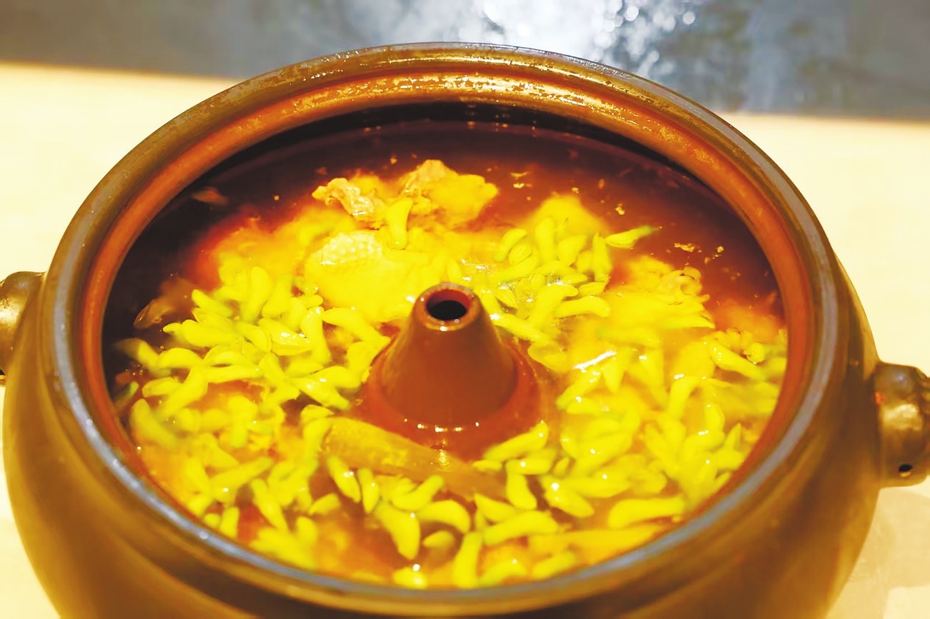 金雀花气锅鸡、黑松露巧拌石斛花、茉莉花酥小河虾……店长陆瑜介绍,本次春菜在多个维度实现突破。食材选用上,除香椿、春笋等传统春菜外,更创新融入金雀花、茉莉花、石榴花、菊花、石斛花等6种可食用鲜花,呈现地道鲜花宴。烹饪理念上,打破“鲜花仅为点缀”的惯例,让花香与食材本味深度交融——金雀花与气锅鸡相得益彰,茉莉花与河虾酥炸后清雅酥香。文化表达上,首次将西南联大文化IP系统融入宴席,让食客在品味春菜的同时,感受昆明独特的人文底蕴。