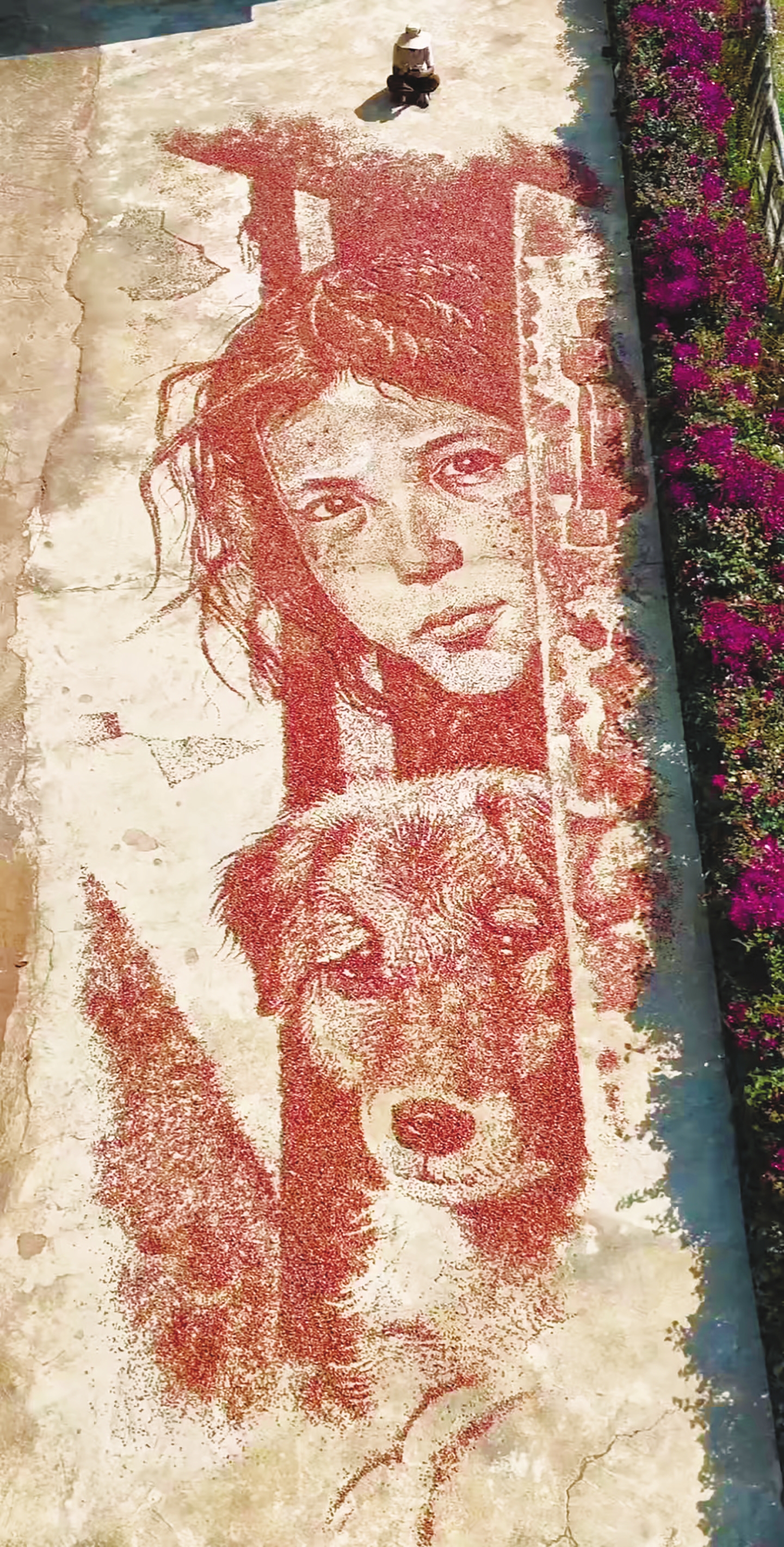2026年初,宁思在村中偶然发现当地特有的老品种红玉米颗粒饱满、色泽温润,是天然而独特的艺术材料。他当即决定,用自己最擅长的方式为村庄发声:以玉米为颜料,以大地为画布,创作巨幅乡土艺术画,期待以此吸引更多人关注这座深山小村。