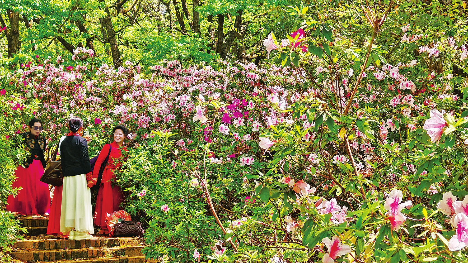 游客们沿步道拾级而上,穿行于花海之间,驻足观赏,拍照留念,尽情享受着人在画中游的诗意与惬意。“每年春天都要来黑龙潭公园看杜鹃,今年的花开得很好,颜色特别美,看着心情都变好了。”一位正在花丛中留影的市民兴奋地说。