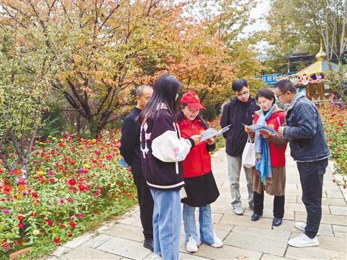 近日,昭通市文旅志愿服务者走进渔洞名樱庄园景区,向游客传播文明旅游理念,宣传出游安全知识等,确保景区旅游秩序井然。
