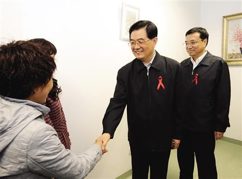 图③:2008 年 12 月 1 日是第 21 个世界艾滋病日。胡锦涛同志和李克强同志来到北京地坛医院考察艾滋病防治工作。