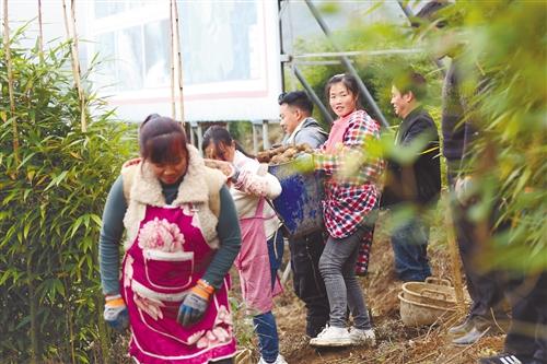 罗坪村天麻丰收村民乐 眼下,绥江县板栗镇罗坪村300余亩天麻喜获丰收,村民正忙着采挖、搬运、装车,大家脸上洋溢着丰收的喜悦。近年来,当地立足资源禀赋,引导农户发展天麻产业实现增收,预计今年产值可达320余万元。 通讯员 杨东升 刘苧怿 摄