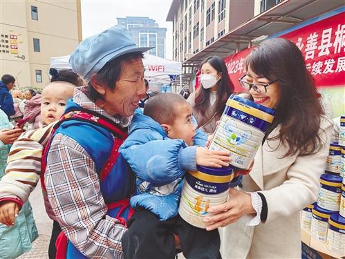 近日,永善县红十字会联合县易地扶贫搬迁后续发展服务中心、县妇幼保健服务中心到红光安置区、桐堡安置点举行中国乡村发展基金会2023年度捐赠奶粉发放仪式。据了解,此次共发放价值41万余元的奶粉300箱1800罐,惠及300名婴幼儿。 通讯员 黄 桦 摄