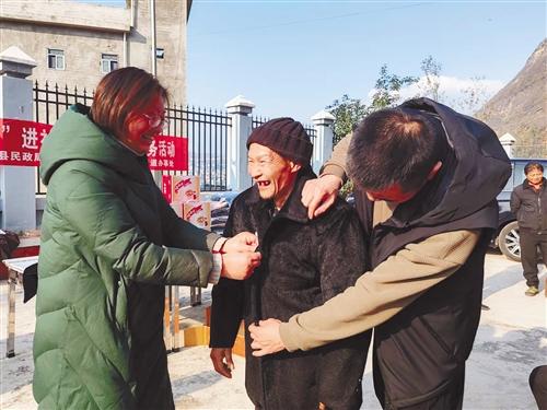 永善—— 寒冬送温暖 老人笑开颜 2023年12月31日,永善县民政局、县红十字会、永兴街道等单位联合组织社工、志愿者到永兴街道小河社区居家养老服务中心开展“寒冬送温暖、老人笑开颜”走访慰问活动。社工、志愿者看望慰问失能困难老人,了解他们的日常起居、身体状况、生活需求,并送去爱心人士捐赠的八宝粥、防寒大衣、保暖内衣等慰问品,让他们深切感受到党委、政府的关心关怀和社会大家庭的温暖。图为该县志愿者为困难老人穿新衣服的情景。 通讯员 黄 桦 摄