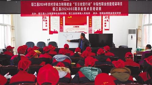 绥江:“强技赋能”跑稳转移就业“第一棒” ◆通讯员 罗 洪 文/图 “抓手柄,必须抓牢,轻踩离合器……”1月15日,在绥江县中城镇绍廷村举办的叉车司机培训班上,56名学员统一着装,认真聆听教练讲解叉车操作规程,依次上车实际操作,学习叉车装卸应用技术。 “去年就一直在等着开班,不但免费学技能,还可以免费考证。”29岁的赵云川来自福兴社区,因为市场需求大、工资待遇好,赵云川一直希望成为一名叉车司机。得知绍廷村在开办技能培训班,他和伙伴余辉第一时间报名参加,希望考取专业从业资格证,为家庭带来更多收入。 近年来,新滩镇银厂村发展了2800多亩猕猴桃产业。眼下正是猕猴桃冬季管护的关键时节,60多名果农将果树休眠期变成技能“充电期”,认真学习果树管护知识,现场观摩果树嫁接、病虫害治理、修枝整形等技术要领,为来年果树丰收增产夯实基础。“既能学到技术又不要钱,而且还上门教我们,我对水果种植更有信心了。”银厂村10组的蒋慧敏边听边记,对管好自家的几亩猕猴桃信心满满。 绥江是山区农业县,良好的生态和独特的气候孕育了半边红李、猕猴桃、鲜笋等生态绿色农产品。进入网络时代,利用互联网让农产品“走”出大山成为新生代果农创业的新路径。在新滩镇鲢鱼村的培训室里,一场网络创业直播培训正在举行,35名年轻人跟着导师认真学习网络创业技能。从设备的使用及拍摄技巧,到直播规则讲解、话术拆解和产品上下架流程,导师以理论结合实操,一边系统讲解一边答疑解惑,贴近实际、深入浅出的授课让学员们收获满满。 “感觉自己在主播的话术、场控,还有视频剪辑这些方面特别有收获!”“90后”姑娘袁萍材信心满满地表示,不久之后,她一定能成为一名优秀的网络主播,为家乡的农产品打开销路。 只有拥有好技能,才能找到好工作。元旦过后,从乡村到城镇,电工、架子工、月嫂、家政服务等一场场面向农村劳动力的补贴性职业技能培训如火如荼地开展着。“今年,我们是人社部门牵头,多部门参与,结合培训对象的实际需求,探索开展技能等级证加专项证书的‘双证’培训模式,群众参与的热情非常高。”绥江县人社局就业中心主任李燕伶告诉笔者,今年绥江计划实施培训1500人,目前已开班3个,培训139人。 绥江县共有农村劳动力6.31万人,2023年转移就业5.6万人。今年,当地以实施“乡村振兴蓄能行动”“输转用工赋能行动”为载体,将农村劳动力职业技能培训作为做好“人”文章的起笔之法,抢抓外出务工劳动力春节返乡的黄金时期,在昭通市率先发起职业技能培训“百日攻坚”行动,以“强技赋能”帮助农村劳动力跑稳转移就业“第一棒”。 “群众需要什么,我们就培训什么;市场需要什么,我们就培训什么。政府列单,群众选单,培训机构接单,政府买单。”李燕伶表示,在实施职业技能培训的同时,人社部门还在抓紧对接市场,收集和推介就业岗位,帮助农村劳动力实现由“苦力型”向“技术型”转变。
