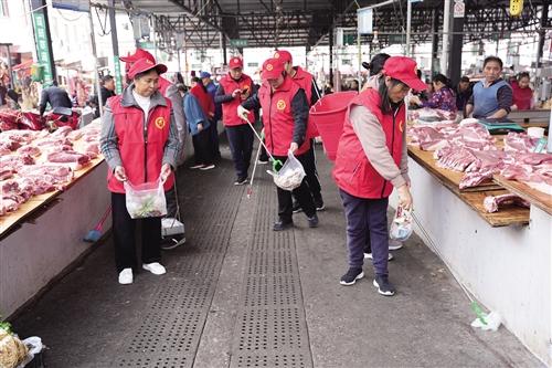 退休老年志愿服务队进市场参与保洁。