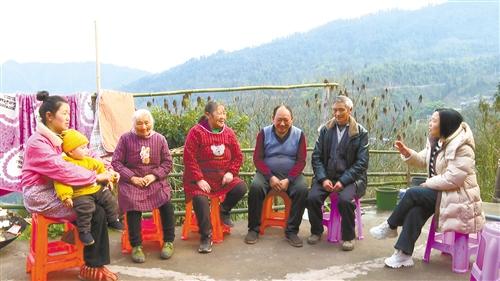 村“两委”干部、片区党支部书记、村民小组长和热心群众组建起“七色志愿服务队”,帮助村民解决生活中的困难和问题。去年4月,互助村12组的李朝斌和黄维恩因为挖水沟起了矛盾,村里的“蓝色志愿服务队”及时介入化解了纠纷。之后,服务队志愿者带着黄维恩再次来到李朝斌家中回访。