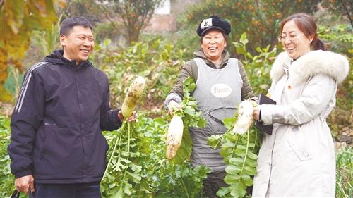 盐津县纪委监委选派驻村第一书记和工作队员,让干部在乡村振兴一线服务群众、增长才干,为全面推进乡村振兴、巩固拓展脱贫攻坚成果提供坚强纪律保障和力量支持。图为盐津县纪委监委驻村第一书记在庙坝镇大坝村田坎村民小组与群众一起采收萝卜。 通讯员 刘 鑫 摄