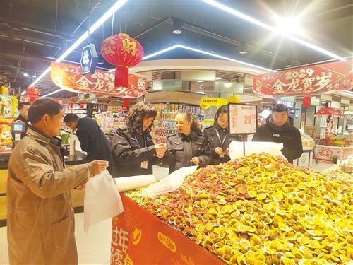 图为市场监管人员在开展节日食品市场质量检查。