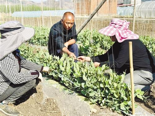 本报讯(通讯员 王秋静 严格 文/图)近日,笔者在昭阳区旧圃镇三棵树社区看到,村民正在对水果豌豆苗进行灌溉、施肥等管护工作,一派繁忙景象。