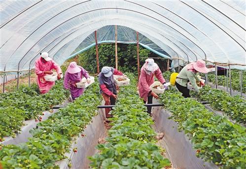 “草莓基地建起来后,我就天天在这里打工,一天100块钱。这里离家近,方便照顾家里人。”张玉巧是基地的务工人员,她笑着告诉笔者,对现在的生活她已经很满足了,她相信日子会越来越红火。