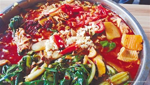 下午快放学了,韦茹茵把握好时间点,炒好火锅底料,倒入之前熬好的骨头汤煮沸,待飘出浓浓的香味后,她将肉、香肠、菌子、洋芋、白菜等食材倒入大锅中。一会儿,香味四溢。“哇,太香了!我口水要淌出来了!”“班长,赶紧拿盆来,给小玉接住口水,要不就淌在锅里了……”她与前来端火锅的学生不断打趣,老师有情,学生有爱,其乐融融。