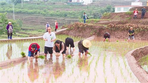 连日来,水富市降雨天气持续。为全力抢抓时机,确保秋季粮食稳产增收,向家坝镇永安村田竹片区的稻农奔忙于田间地头,分工协作、互帮互助,用勤劳的双手将一株株嫩绿的秧苗插入稻田里。转眼间,秧苗串成线、连成片,满是新绿的水田倒映着稻农繁忙的身影,呈现出一派生机勃勃的景象。
