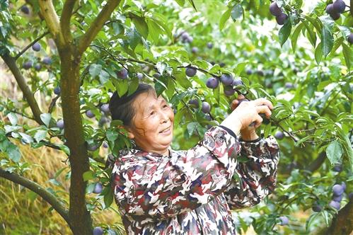 一大早,果农们背着背篼或拎着桶,穿梭在果园里,忙碌而熟练地摘取李子。采摘结束,大家或背或挑,将李子送往收购点。