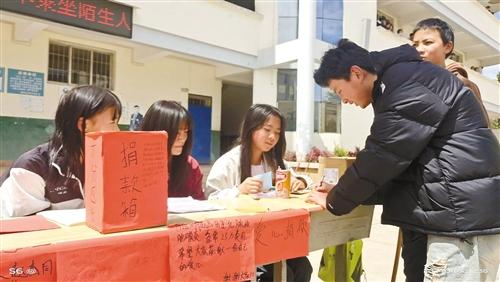 阳光洒落在苏甲乡中学的操场上,形成斑驳的光影。在操场的一角,一个由几张桌子和一块横幅组成的捐款现场显得格外醒目。学生三五成群地聚集在一起,时不时有学生走到捐款箱前,郑重其事地将手中的零钞投入箱中。捐款桌前,几名学生正忙碌地记录着每一位捐款者的姓名和捐款金额。