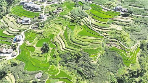 夏至过后,威信县旧城镇的梯田一片绿意盎然,清风摇曳中,乡村和美、百姓安居乐业的画面正徐徐展开。