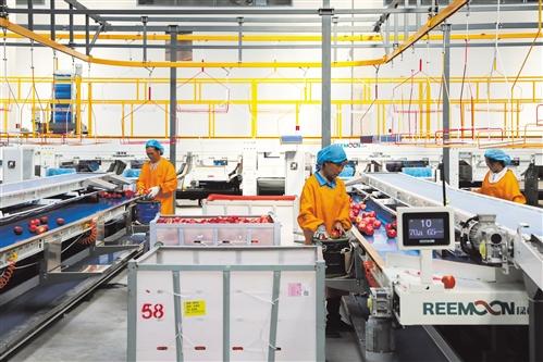 刚从果树上采摘下来的苹果,随即便被运进新建成的智慧云仓中。在这里,一个个苹果整齐列队“走”上分拣线,通过科学、高效的分拣,大果、小果、优质果、瑕疵果“各走各的路”。随后,工作人员对分拣好的苹果进行分类包装,一件件包装精美的苹果被源源不断地送往北京、上海、广东等地。
