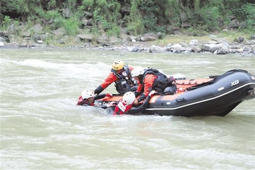 比赛开始后,9支队伍63名参赛队员迅速投入到争分夺秒的野外急流救援行动中。各参赛队分别乘坐冲锋摩托艇向河中急流水域飞驰而去。开阔的河面上,各小组队员相继跃入河道,与急流抗衡,将间接赴救、直接赴救、舟艇救援、潜水救援、横渡救援、游泳救生等技术,充分运用到了个人急流横渡、抵礁救援、单人带人脱困、急流驾驶(冲急流坡)、舟艇活饵救援等比赛项目当中。