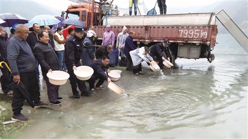 近日,永善县在黄华镇朝阳坝码头开展2024年渔业增殖放流活动,向金沙江流域投放鲢鱼、鳙鱼、重口裂腹鱼、中华倒刺鲃、白甲鱼等鱼苗50.176万尾。通讯员 李孝伟 摄