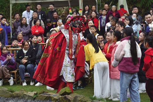近日,水富市云富街道高滩村举行了精彩纷呈的川剧变脸、杂技等非遗表演,博得在场观众 的阵阵掌声和欢呼声。