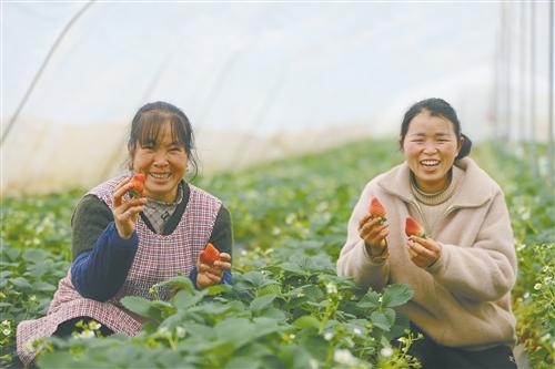 ◆记者 聂孝美 高旭东 阮孝芝 文/图 近日,记者走进昭阳区永丰镇春瑞草莓园。冬天的第一颗草莓很甜,果农李章华的笑容更甜。 李章华,昭阳区永丰镇大银村人,曾经是一名打工人,为了改变生活,他毅然回到家乡,投身农业。经过一番考察,他发现草莓市场前景广阔,于是便开始了他的草莓种植之路。第一年试种,由于缺乏经验,遇到了不少困难,但李章华并没有放弃。 他积极学习种植技术,不断总结经验教训。第二年,李章华的努力终于得到了回报,草莓的产量和质量都有了明显的提高,他尝到了一些甜头。今年是他种植草莓的第三年,眼下的草莓园里一派繁荣景象,草莓迎来了大丰收。 草莓园里,草莓植株上挂满了红彤彤的果实,宛如一颗颗璀璨的红宝石。果农们脸上洋溢着喜悦的笑容,他们一边采摘,一边交流着种植经验。 采摘工作完成后,果农们将草莓运送到分拣中心。在这里,工人们对草莓进行仔细分拣和包装。他们将草莓按照品种、大小、色泽进行分类,然后精心包装成一盒盒精美的草莓礼盒。 “喂,老板,你好!今天再帮我采摘100斤巧克力草莓。” “喂,你好,进园采摘,40到45元一斤。” 在与记者交谈的过程中,李章华的“采购热线”不停有电话打进来…… 如今,李章华还成立了自己的公司,年收入超100万元,带动就业20余人,春瑞草莓园的名声越来越响。 在昭阳区永丰镇小闸村的另一个草莓园里,记者见到了果农臧庆禹。臧庆禹今年48岁,种植草莓已经有8年的时间。曾经,他是一名普通的庄稼人,为了生计也曾外出务工。一次下班回家途中,他看到草莓园里红彤彤的草莓,想买些给孩子吃,却被高昂的价格震住了。那一刻,他突然意识到了种植草莓的潜在价值,于是决定自己种草莓,自己研究草莓种植技术。 这一种,就是8年。 记者了解到,在这8年的时间里,臧庆禹不断摸索、尝试,积累了丰富的种植经验。臧庆禹的草莓园每年都能获得丰收。通过种植草莓,臧庆禹一家过上了好日子。 走进臧庆禹的草莓园,工人们手提小篮子,小心翼翼地采摘着成熟的草莓。每一颗草莓都如同珍宝般被对待,工人们凭借着丰富的经验,判断着草莓的成熟度,确保采摘下来的草莓口感鲜美、品质上乘。 “今年的草莓长势好,产量高,品质也不错。草莓的市场价格也比较稳定,我们的收入增加了不少。”臧庆禹高兴地说道,“种植草莓虽然辛苦,但是看到自己的劳动成果得到家人和顾客的认可,心里很开心。” 为了保证草莓的品质和口感,李章华和臧庆禹都采用了绿色、环保的种植方式。他们严格控制农药和化肥的使用量,采用生物防治病虫害的方法,确保草莓安全、健康。同时,他们还注重草莓的品种选择和种植技术的创新,不断提高草莓的产量和质量。