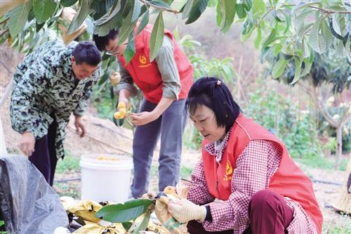 眼下正是枇杷采收的关键期,牛泥村党总支创新开展“我为群众办实事”实践活动,组织驻村干部、在家党员、青年志愿者成立“助农先锋队”,深入田间地头开展采收帮扶活动。这支10余人的志愿服务队,已成为果农最贴心的“田保姆”。