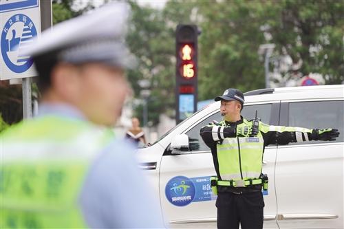 昭通市第一中学考点,交通管理部门增加警力保障交通畅通。记者 张广玉 摄