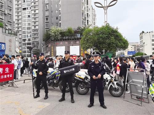 昭阳区第一中学考点,昭通警方护航高考。 记者 莫 娟 摄
