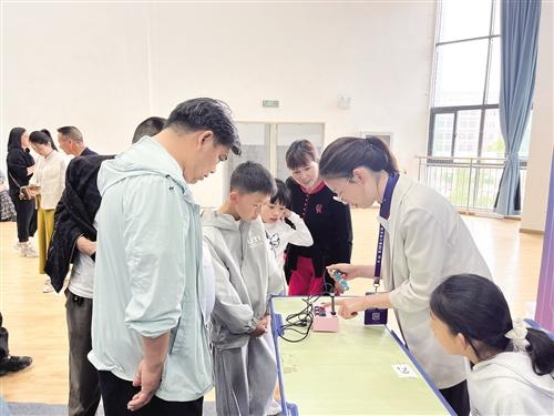 江婷婷引导学生和家长们观察实验。(图片由受访者提供)