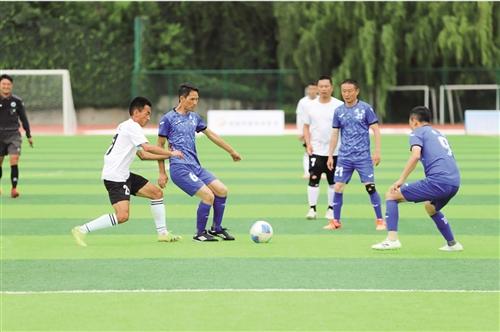 足球比赛现场,队员在抢球。
