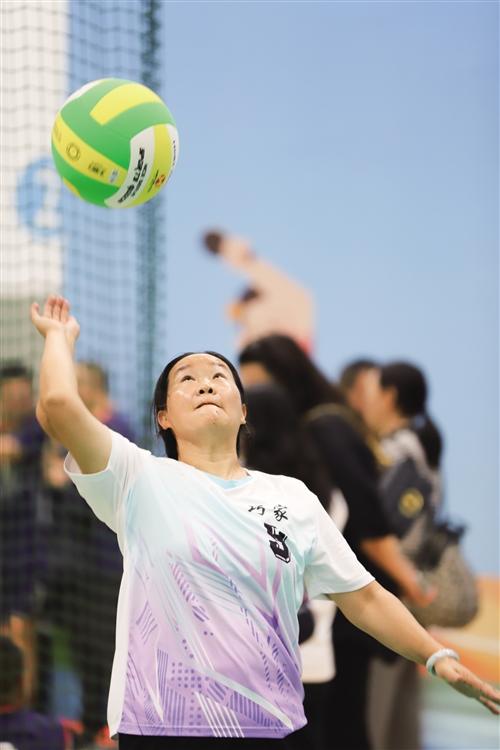 女子气排球比赛,队员扣球。
