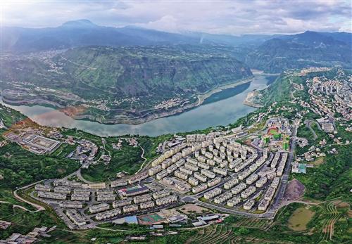 永善县红光易地搬迁安置区是昭通市9个万人以上大型易地搬迁安置区之一,共有102栋3500多套房屋,生活着来自全县13个乡镇(街道)的1.46万名搬迁群众,安置区内教育、医疗等配套设施完善。图为红光易地搬迁安置区与碧绿江水、绵延群山相互映衬,共同勾勒出一幅美丽的夏日画卷。 通讯员 陈 洪 摄