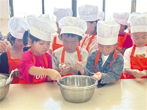在美食制作课堂上,从和面到煎制糯米粑粑,学生们在不断尝试中掌握烹饪技巧,欢声笑语不断。