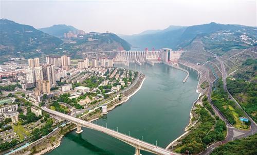 航拍向家坝水电站及水富市区。新华社记者 陈欣波 摄