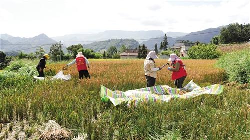 金秋时节,水稻陆续成熟。彝良县两河镇小溪村,阡陌交错的稻田里,金灿灿的稻穗在微风中泛起稻浪,空气中弥漫着浓郁的稻香。干部群众正忙着收割、脱粒、装袋、装车,脸上洋溢着丰收的喜悦。田间一派忙碌景象,奏响了一曲欢快的秋收之歌。